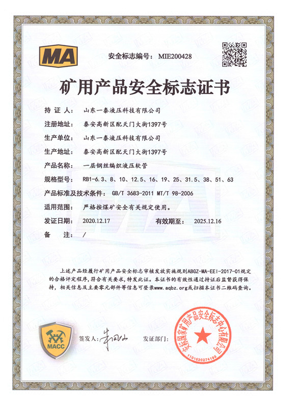 山東一泰液壓科技有限公司,坐落于山東省泰安市國家高新技術產業(yè)開發(fā)區(qū)配天門大街1397號,總占地面積6萬6千多平方米,總建筑面積4萬多平方米。公司注冊資金7500萬元,資產值3億元。公司始終專注于超高壓石油鉆探軟管、柔性節(jié)流壓井軟管、井控高壓耐火軟管總成、高端機械軟管、以及礦用液壓管體等配套產品的研發(fā)和生產。產品廣泛用于陸地和海洋石油鉆井、勘探、開采、輸送等領域;同時還為軍用系列、大型船舶系列提供了優(yōu)質產品的供應保障和信任服務。